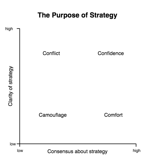 When there is high consensus but low clarity, the purpose of strategy is comfort in the face of the unknown.